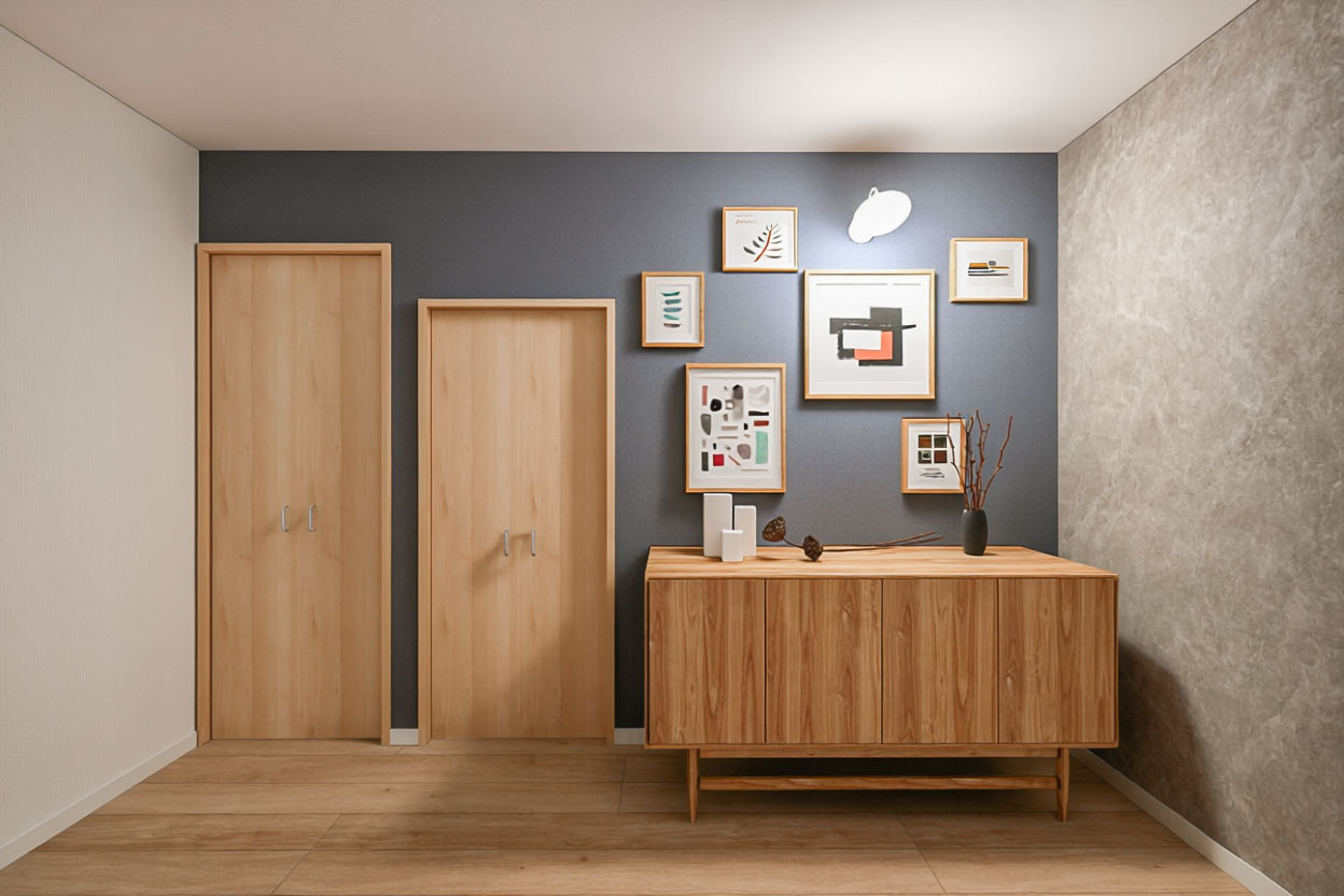 それぞれの個室も、家族一人ひとりの暮らしを尊重するように、ゆとりのある広さが確保されています。たっぷりの収納スペースは、家族の成長とともに増える思い出や道具を、すべて受け入れてくれるでしょう。