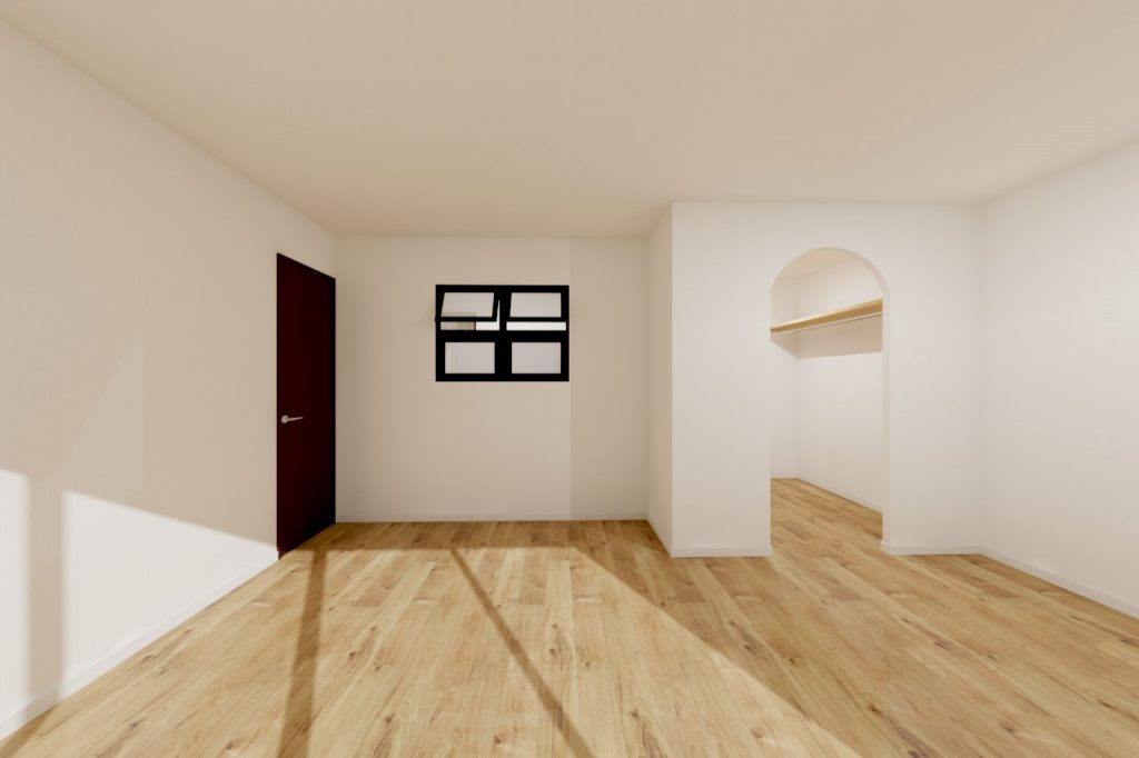【3】広い洋室ですが収納スペースは狭く使いづらそう。ということで、ウォークインクローゼットを新設。入口は可愛らしいアーチ開口にしてみました♪