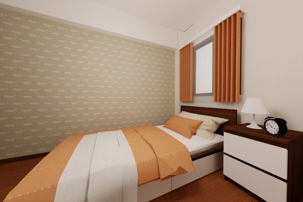 壁1面には、鳥と花の組み合わせの柄クロスを貼ってポイントにしました。