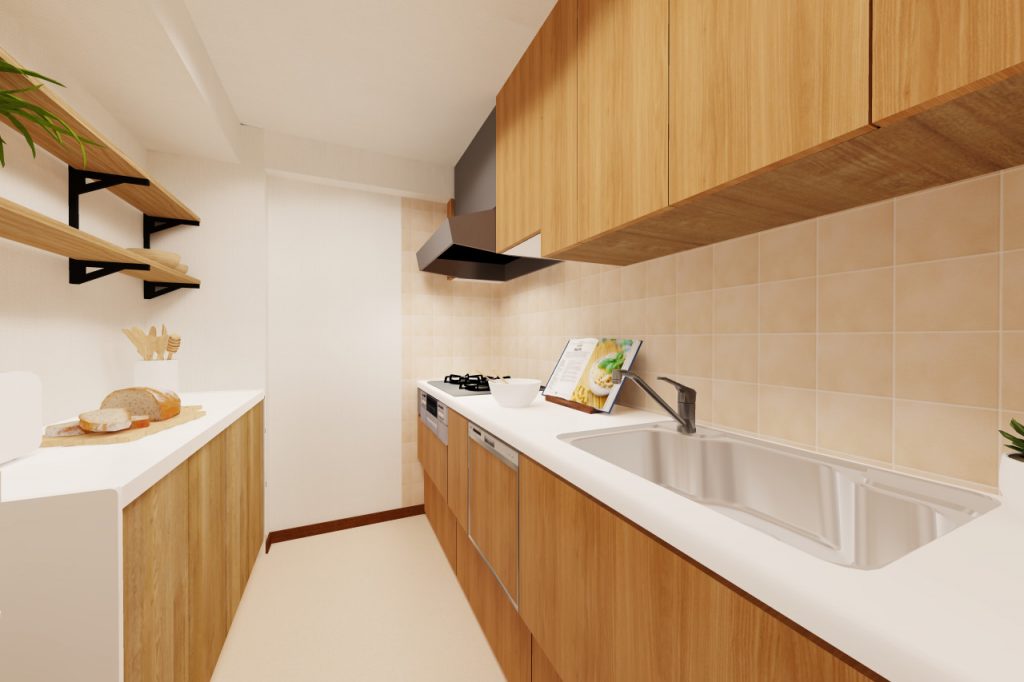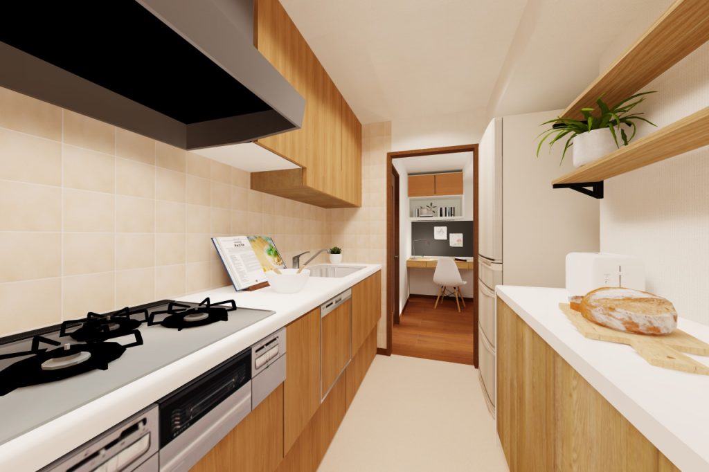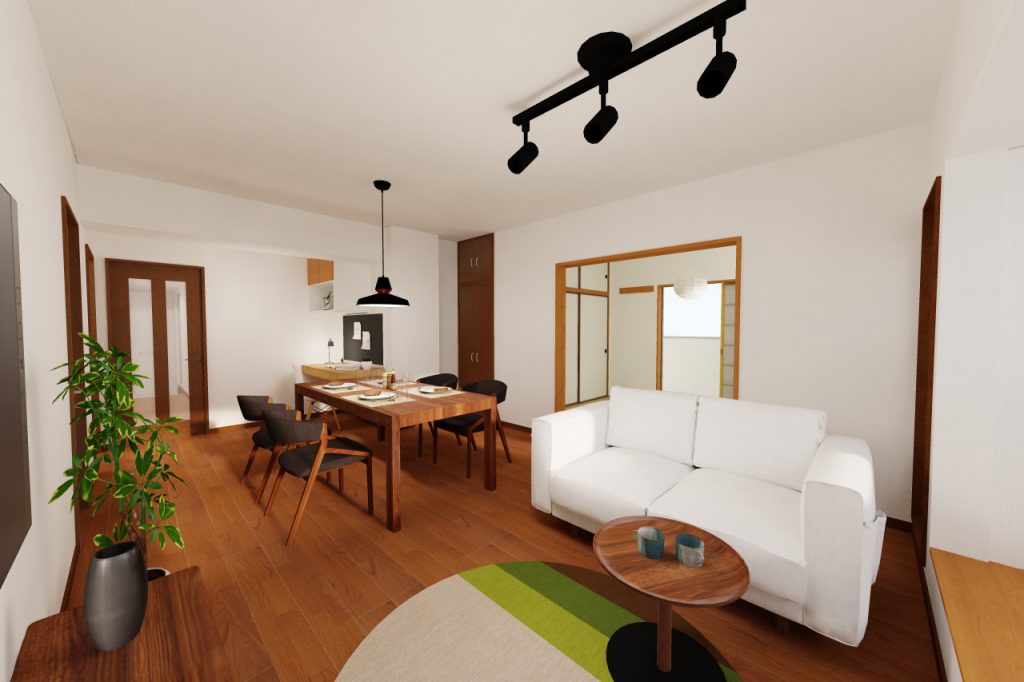 設備機器や建具、6帖の洋室以外の床は既存のものを利用し、部分的な変更で費用を抑えたプランとなっています。