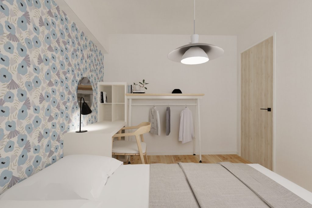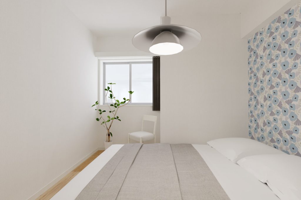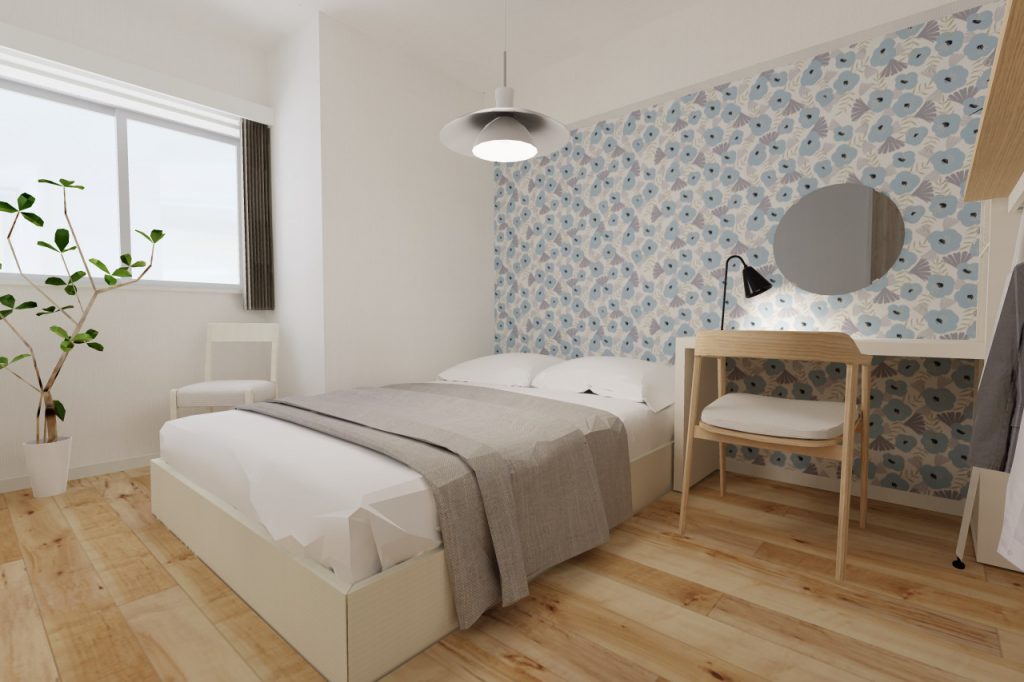 花柄の大柄プリントが施されたアクセントクロスを採用し、シンプルかつ大胆に仕上げてみました。