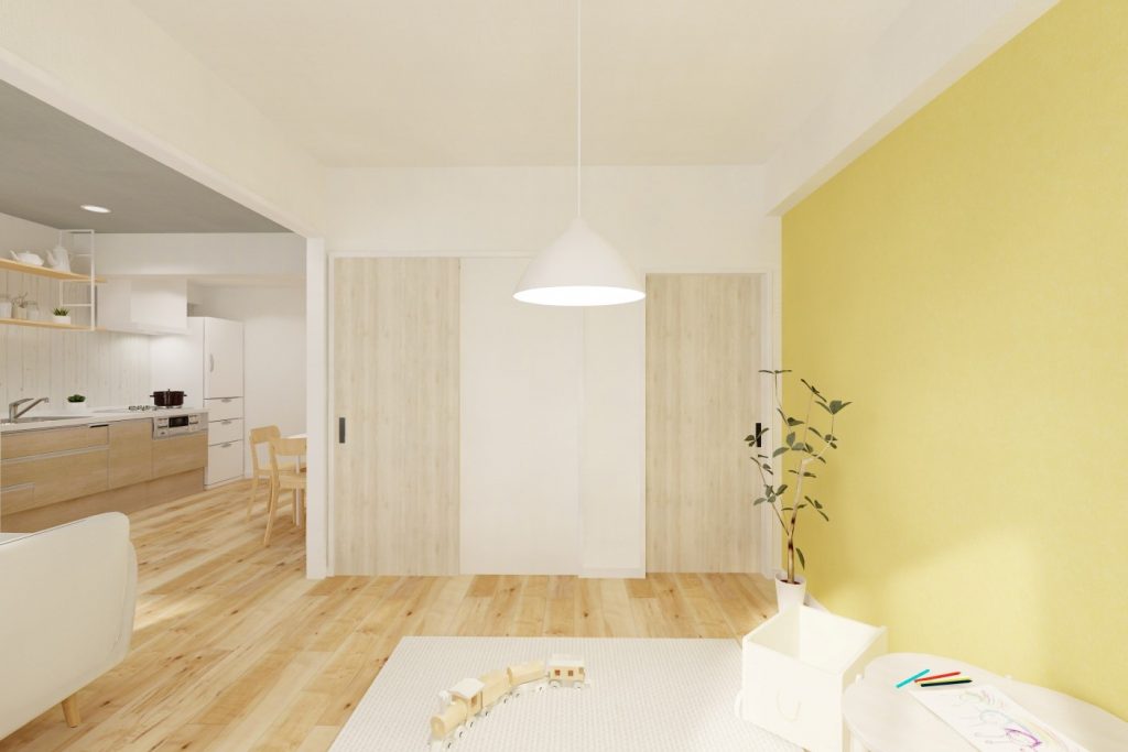 リビング隣のお部屋は片開きドアから2枚引戸に。