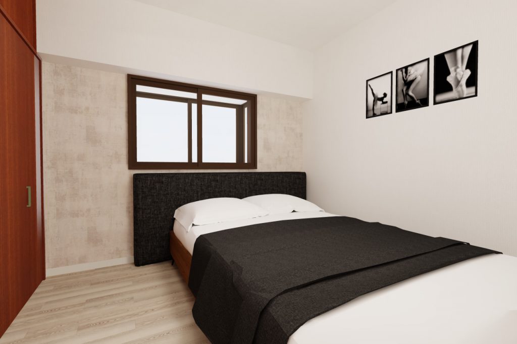 こちらも、窓がある壁面にアクセントクロスを貼っています。