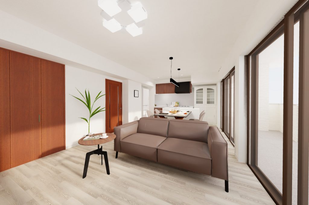 既存のブラウンの建具を活かし、スタイリッシュなイメージに仕上げました。