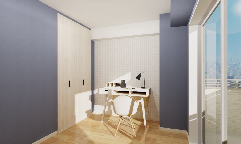 くすんだ青色と白のコントラストが綺麗な2LDKのおうち。