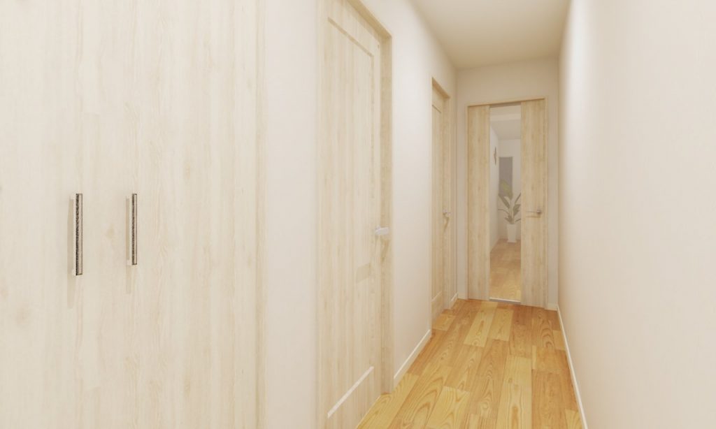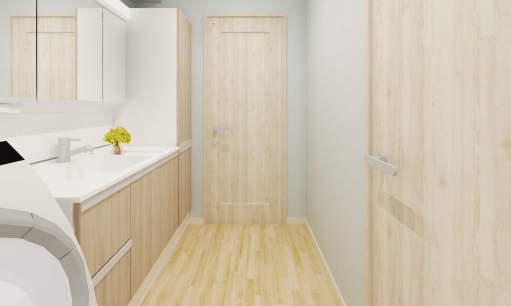 キッチンの色を白にして、隣の白壁に寄せた色合いにしました。