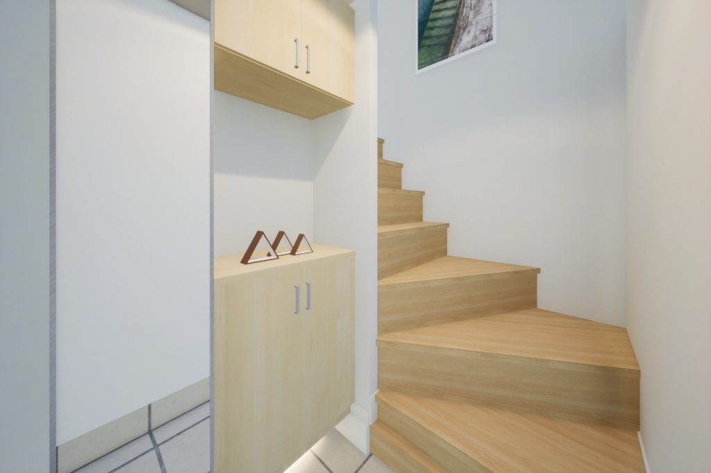 これで、買い物から帰ってキッチンに直行できるようになり、動線が良くなりました。