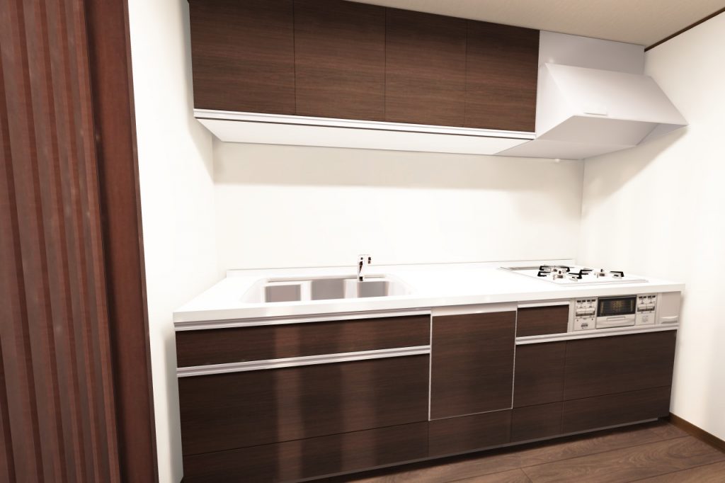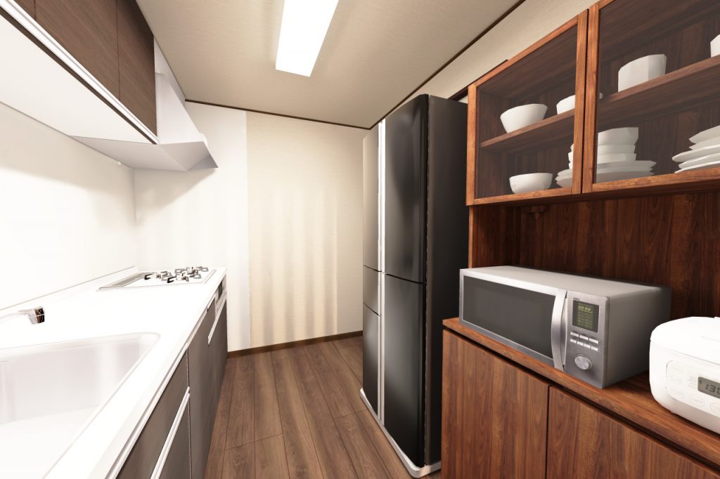 お部屋がコンパクトなので、扉の開閉でスペースを取らないように折戸でなく引戸を採用しています。