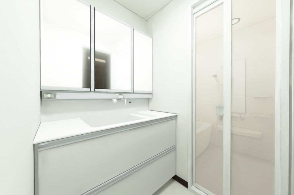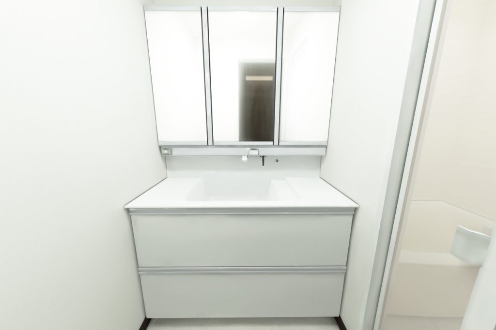洗面化粧台は引出し収納を選定し、たっぷりと物をしまい込めるようにしました。