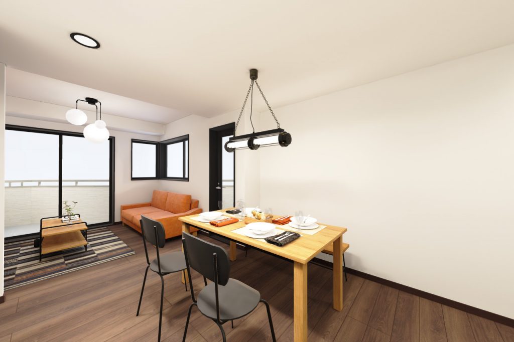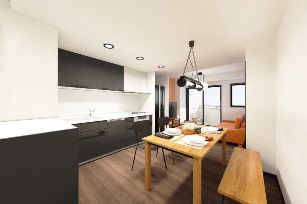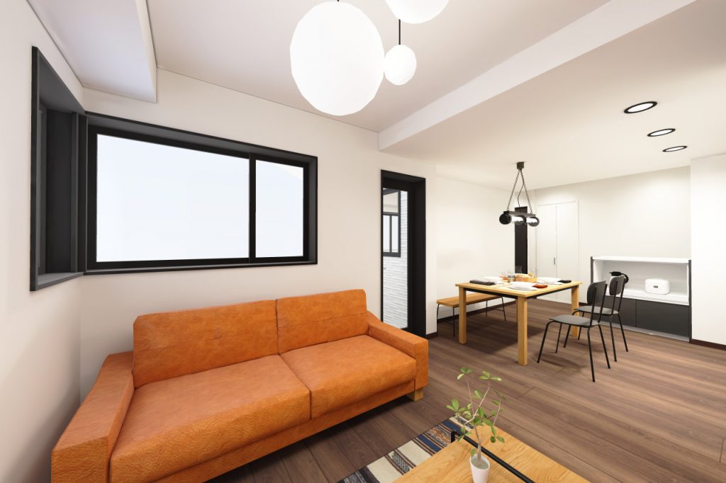元々は奥の窓があるスペースは洋室でしたが、壁を撤去してひとつの空間にしました。窓がなかったダイニングキッチンから、明るいリビングダイニングキッチンになりました。