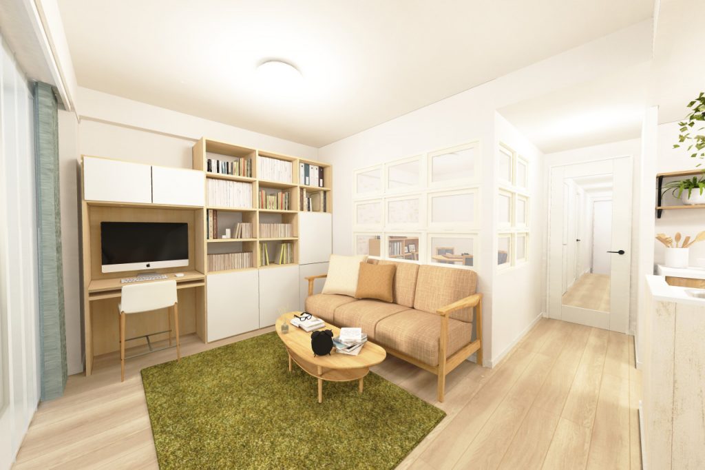 和室部分を家族の書斎スペースとしてプランしました。出入口を廊下側からだけにしたため、個室感が増しました。将来ご家族が増えても1部屋として使うことができますね。