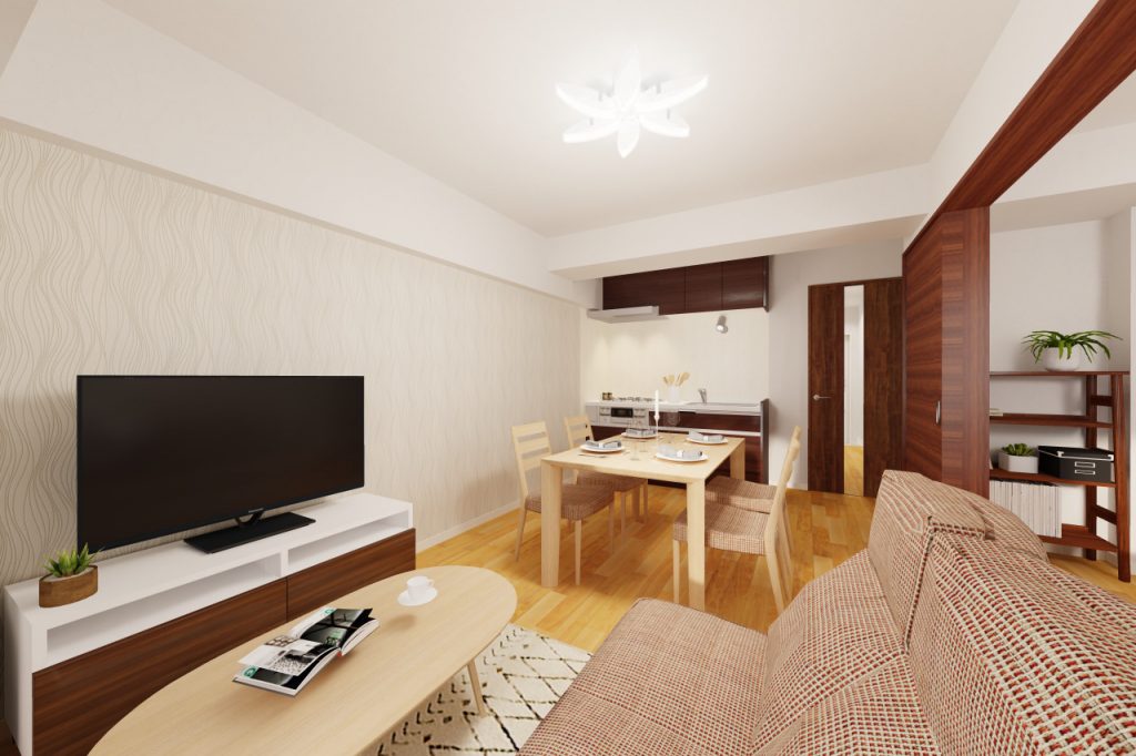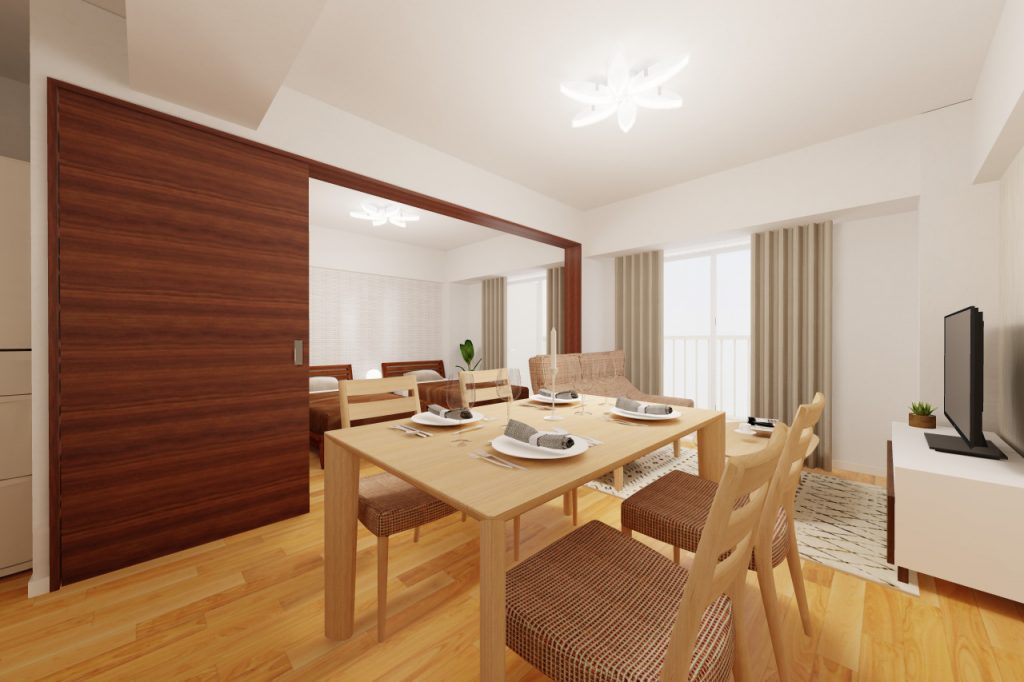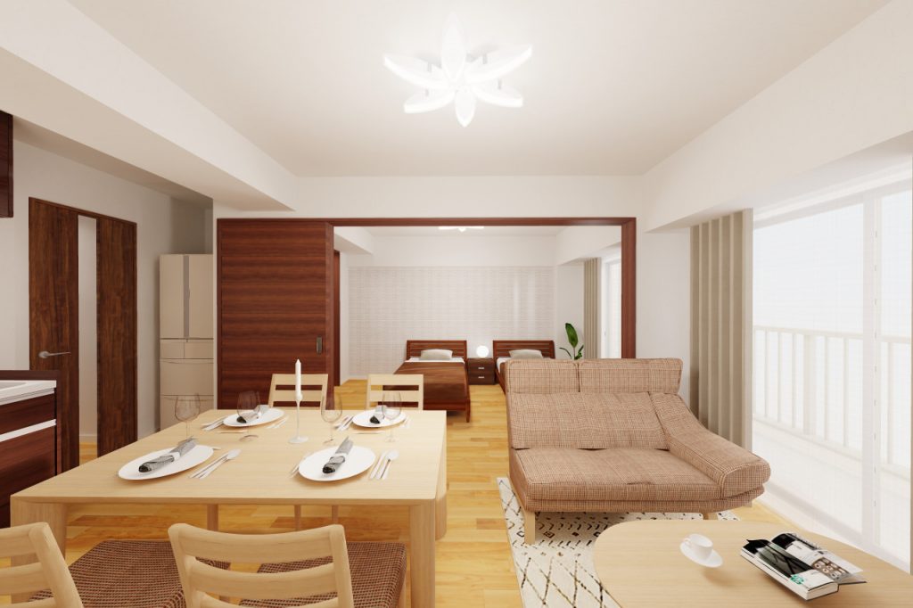 ダイニング家具セットやリビング家具セットは、比較的コンパクトなサイズ感の物を選ぶと、空間を広く使うことができますよ。
