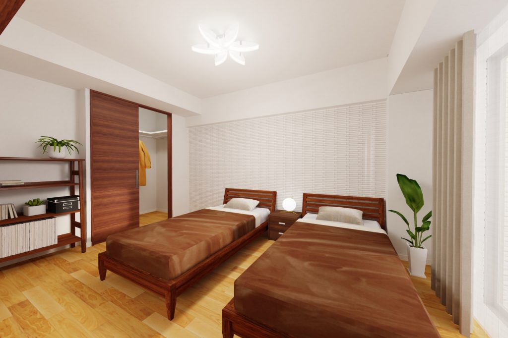 ご夫婦の主寝室は、ダブルベッドではなくシングルベッドを2台配置しました。
