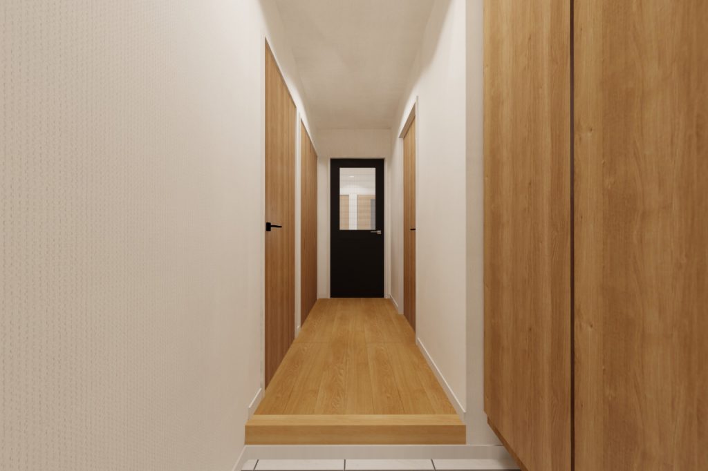 廊下とLDKに扉を設けて