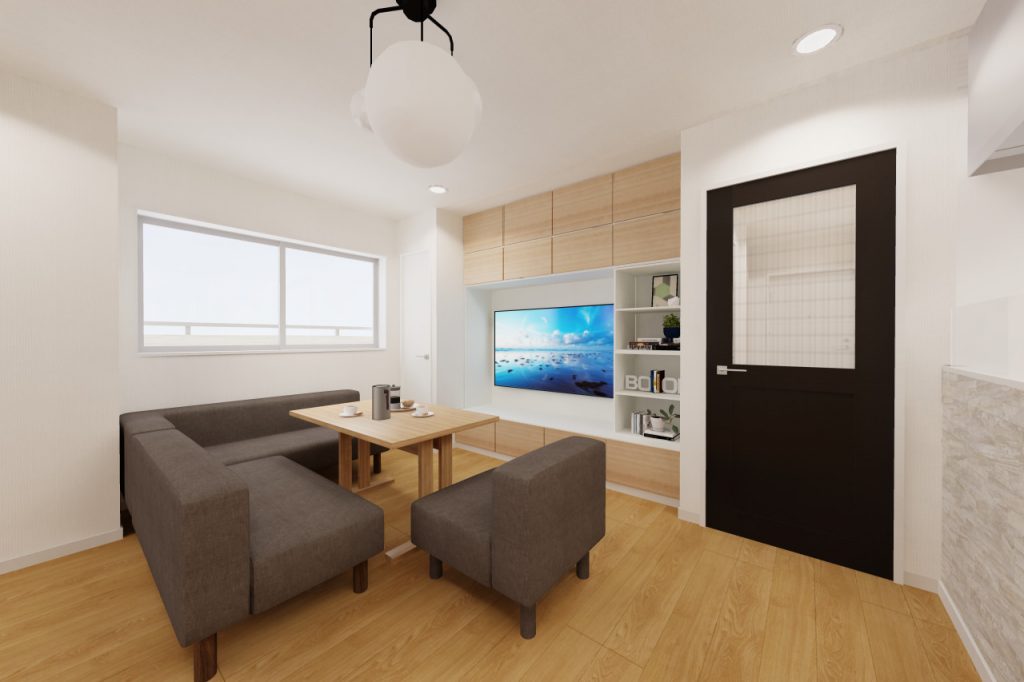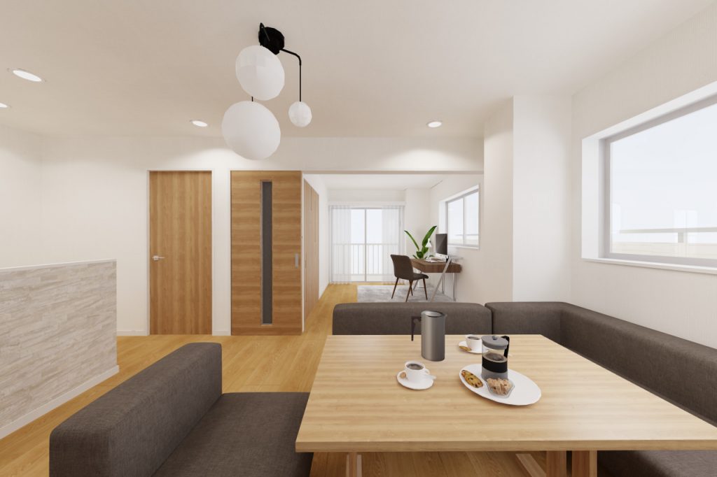 洋室1の扉は開放的な3枚引戸に変更。
