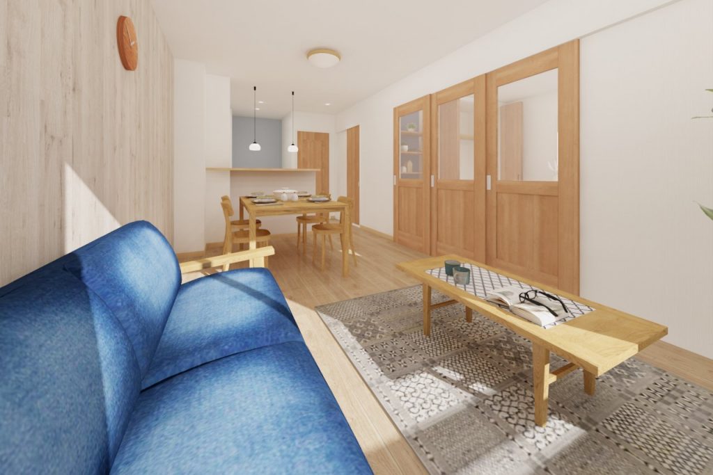 LDKと和室を、広々開放感を感じられるようなお部屋に変更してみました。