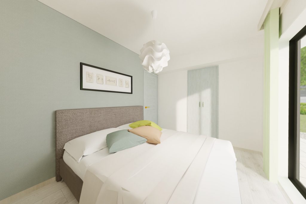 こちらは約6帖の洋室、ご夫婦の主寝室としてイメージ致しました。