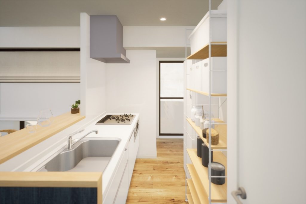 背面には、冷蔵庫やキッチン収納を置ける十分なスペースがありますよ。