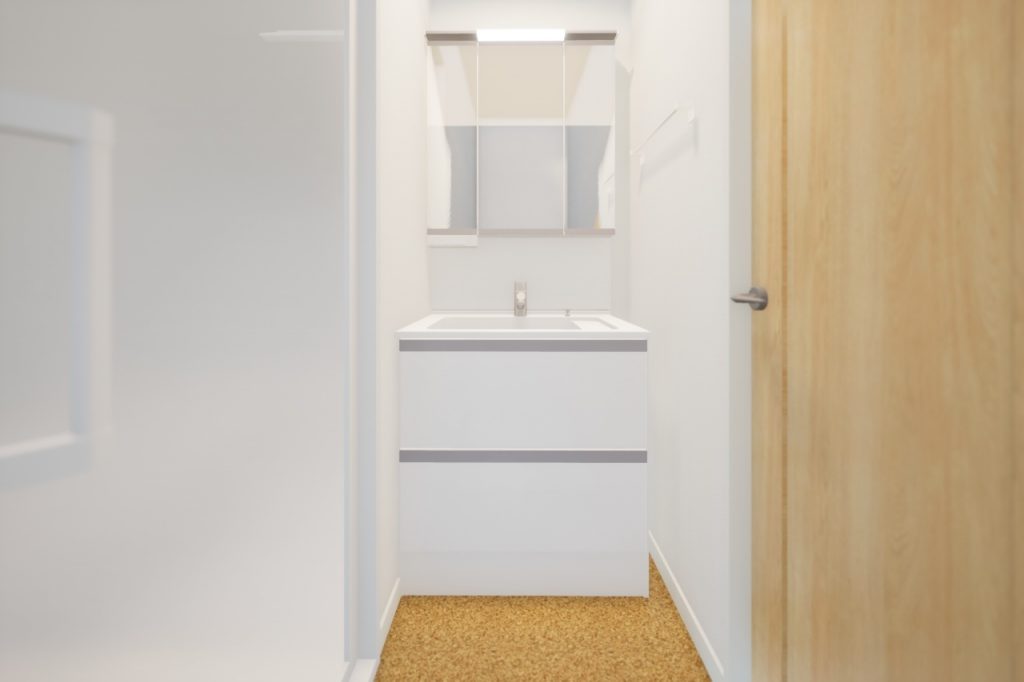 お風呂と洗面化粧台は、数年前に新しいものに交換されているので既存のものを利用。
