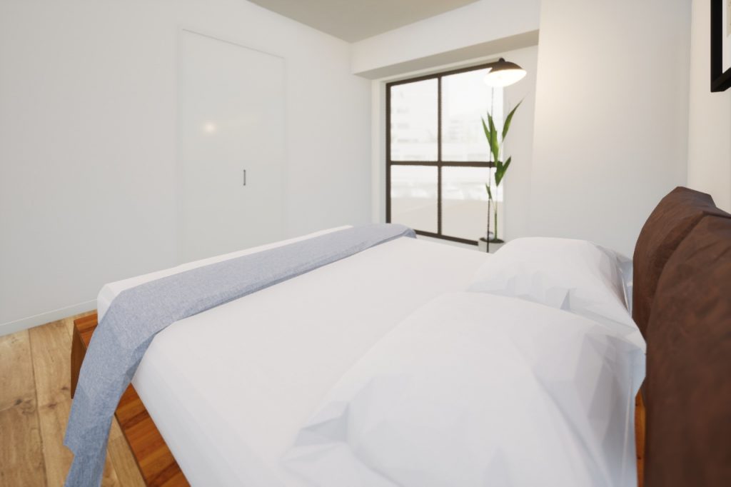 クローゼットも設置してありますし、ダブルベッドも余裕で置けますよ。