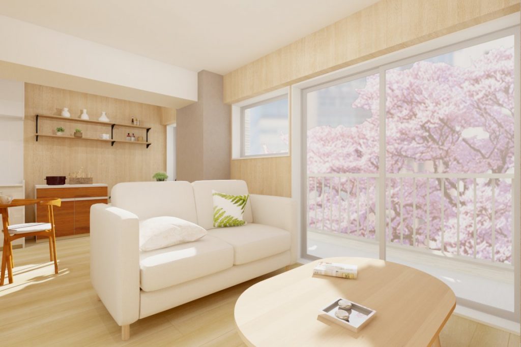 こちらのお部屋は、目黒川沿いの桜並木を眺めることができる、すてきなロケーション。