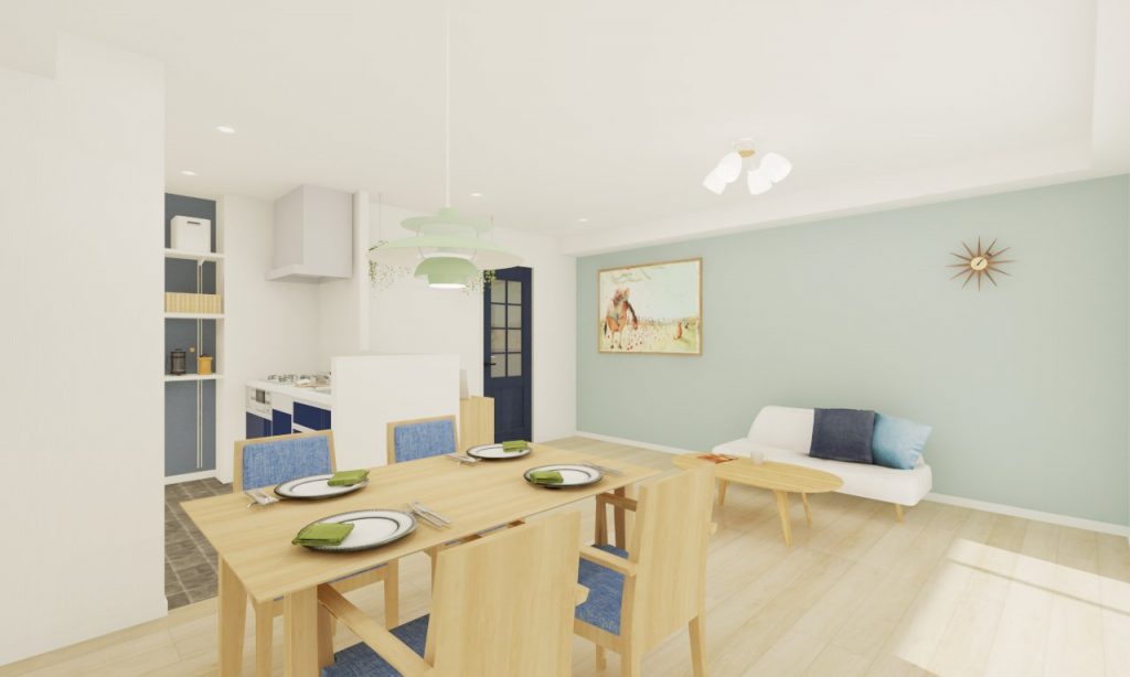 家全体をブルー系色で統一し、男女問わず愛されるようなデザインに仕上げました。