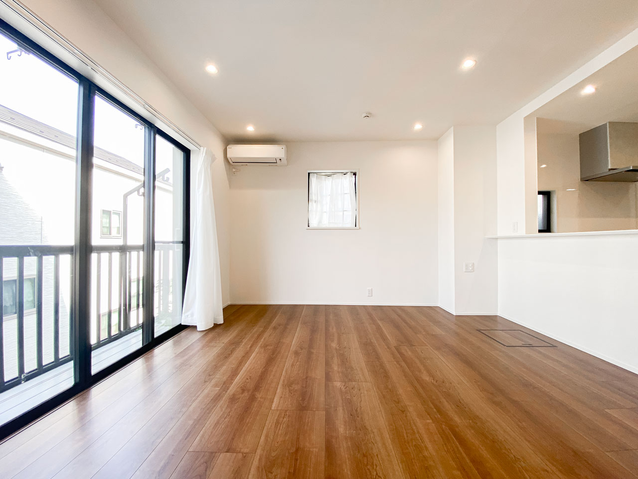 1階には11.25畳のリビング・ダイニング・キッチンがあり、家族が集い、語らうのに十分な広さがあります 。陽の光が優しく差し込む空間で、ゆったりとくつろげます。