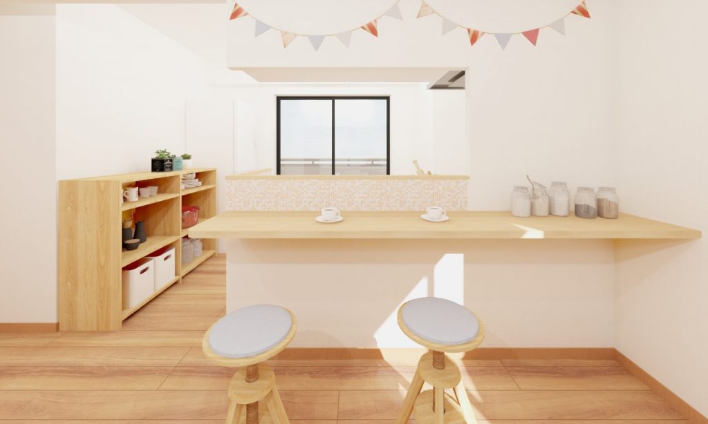 ダイニングテーブルを置く代わりに、少し奥行き広めのカウンターテーブルを増設