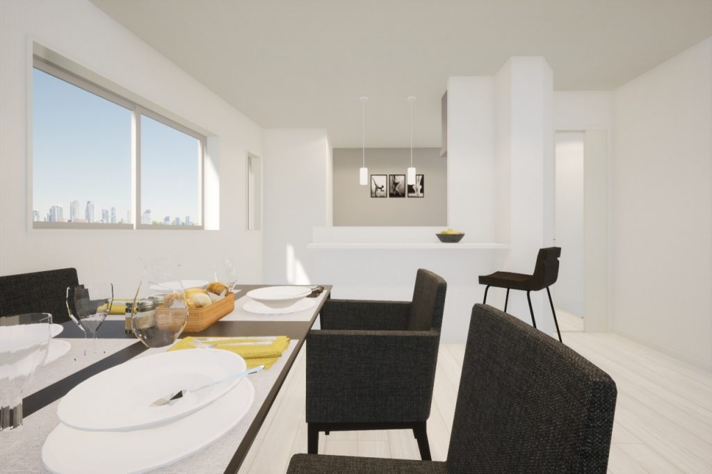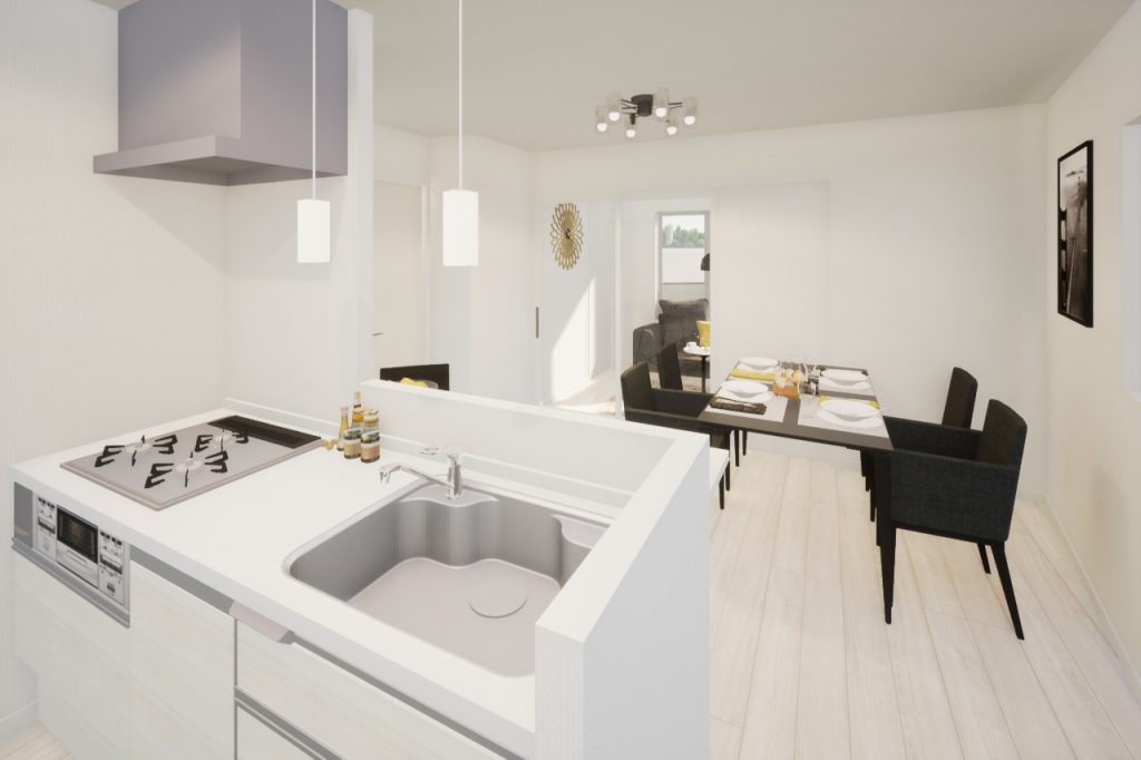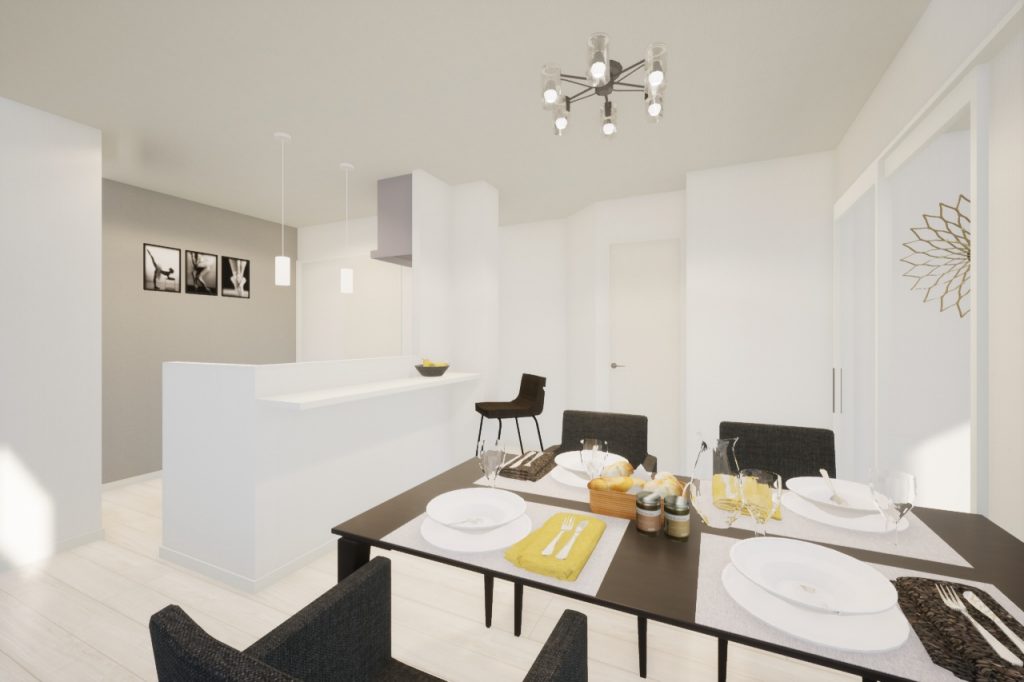 ダイニングが6.7帖と少し手狭ですが、ある工夫を施すだけで開放的な空間に変えることができます!