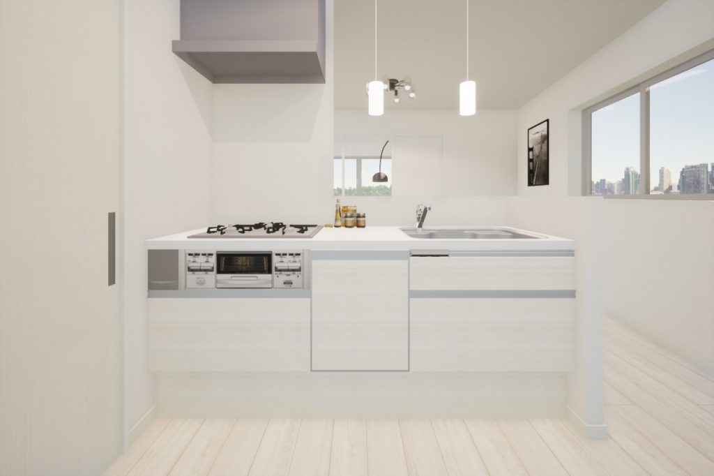 元々はキッチンのシンク上に吊り戸収納がありましたが、今回はそれを撤去し視界が開け、開放的なキッチンに生まれ変わりました◎