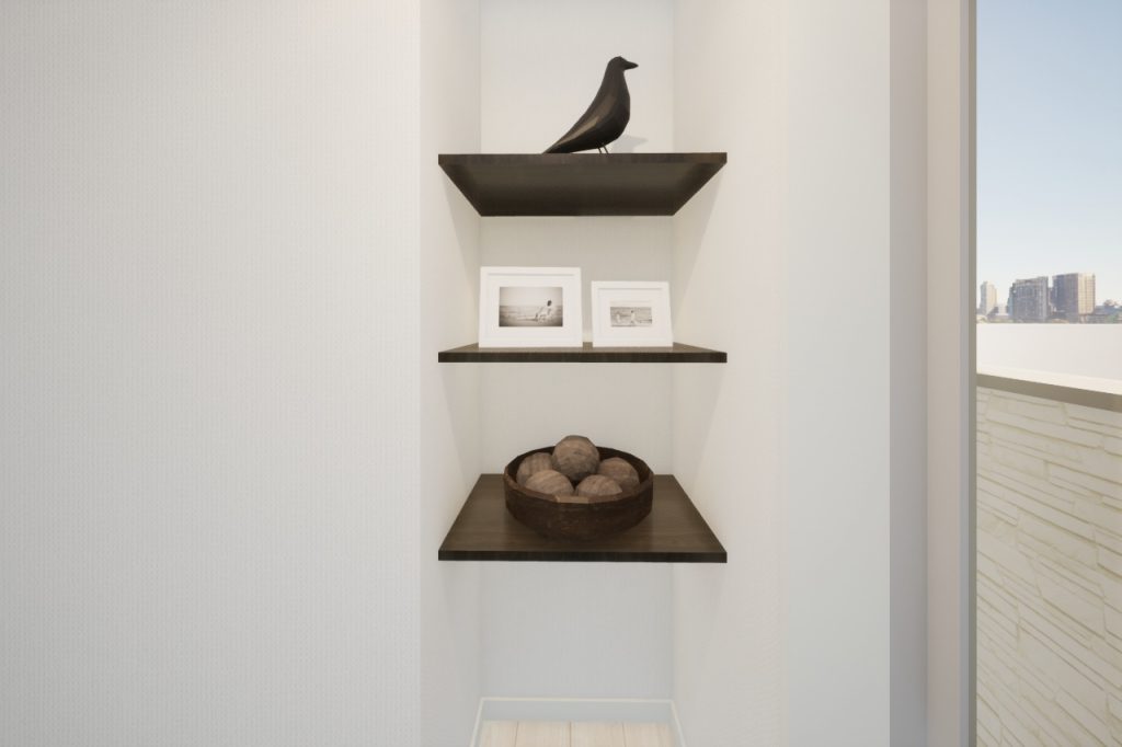 インテリアを飾ったり、雑貨BOXを利用して日用品雑貨を収納したり。見せる収納として活躍しそうですね!