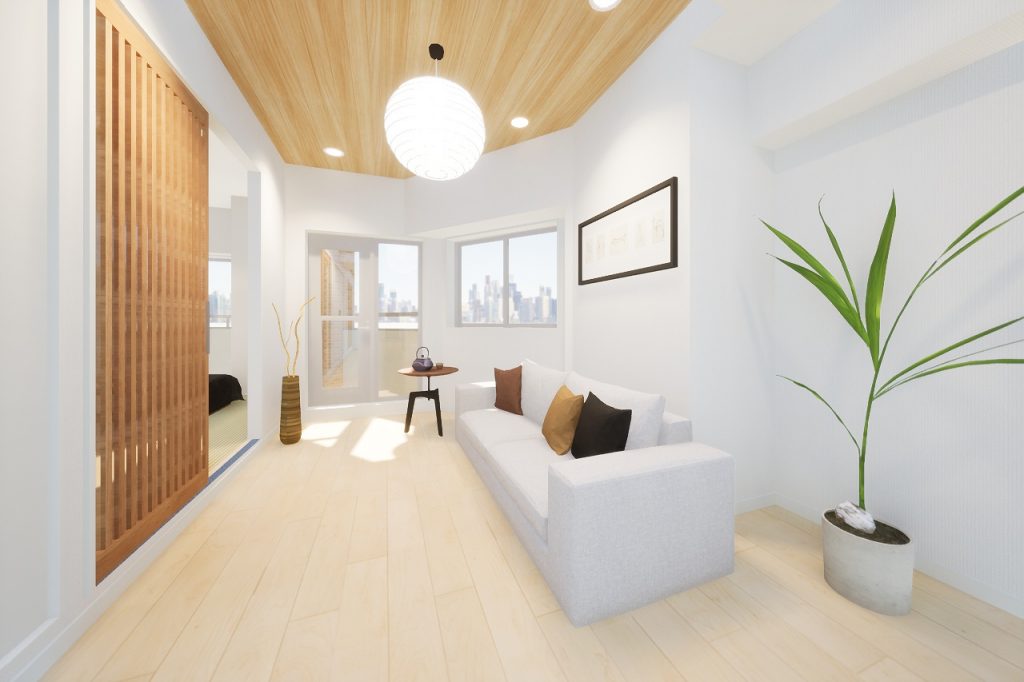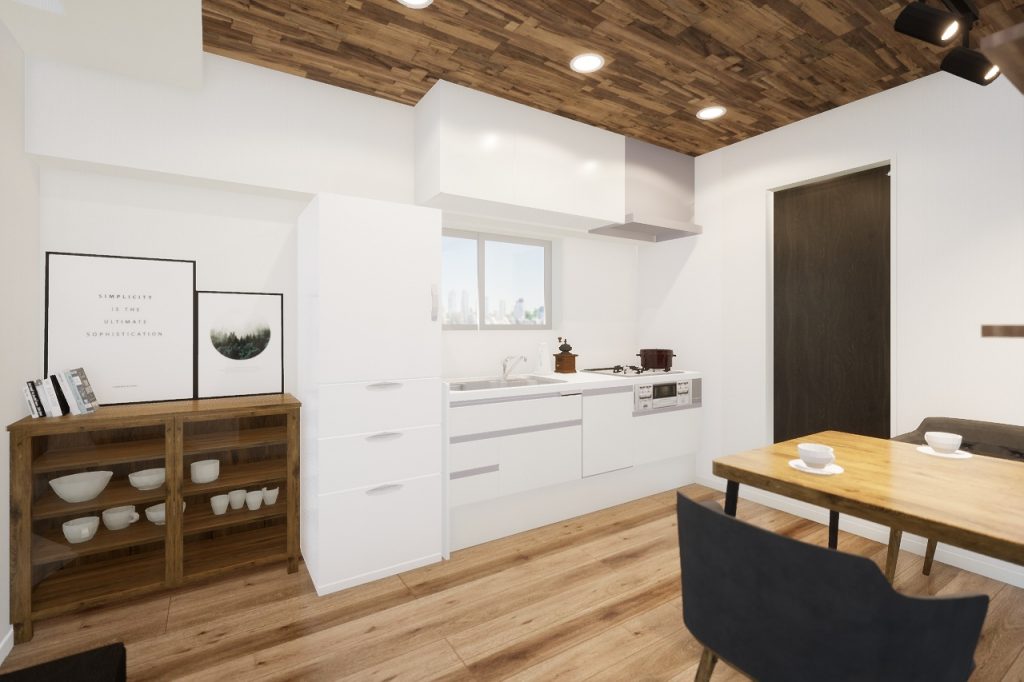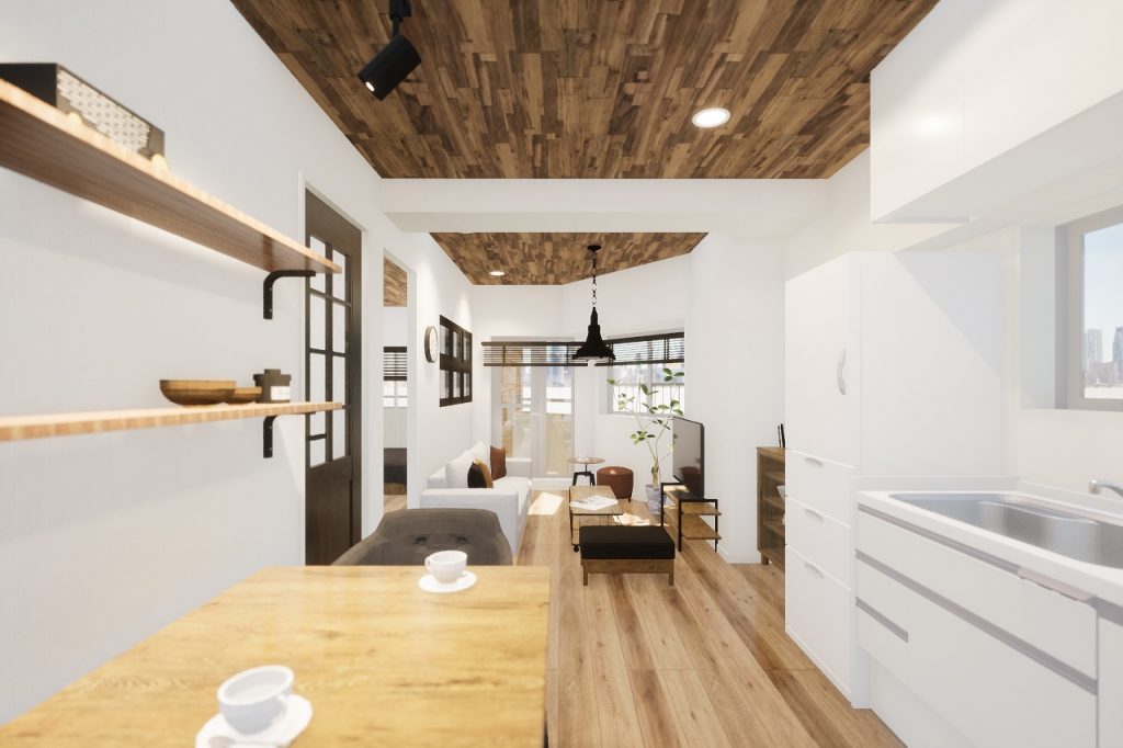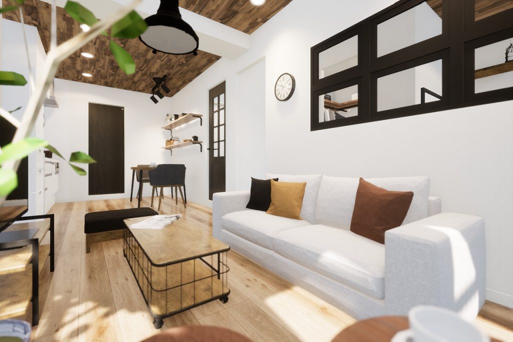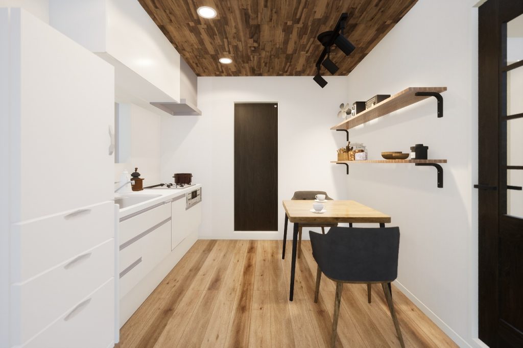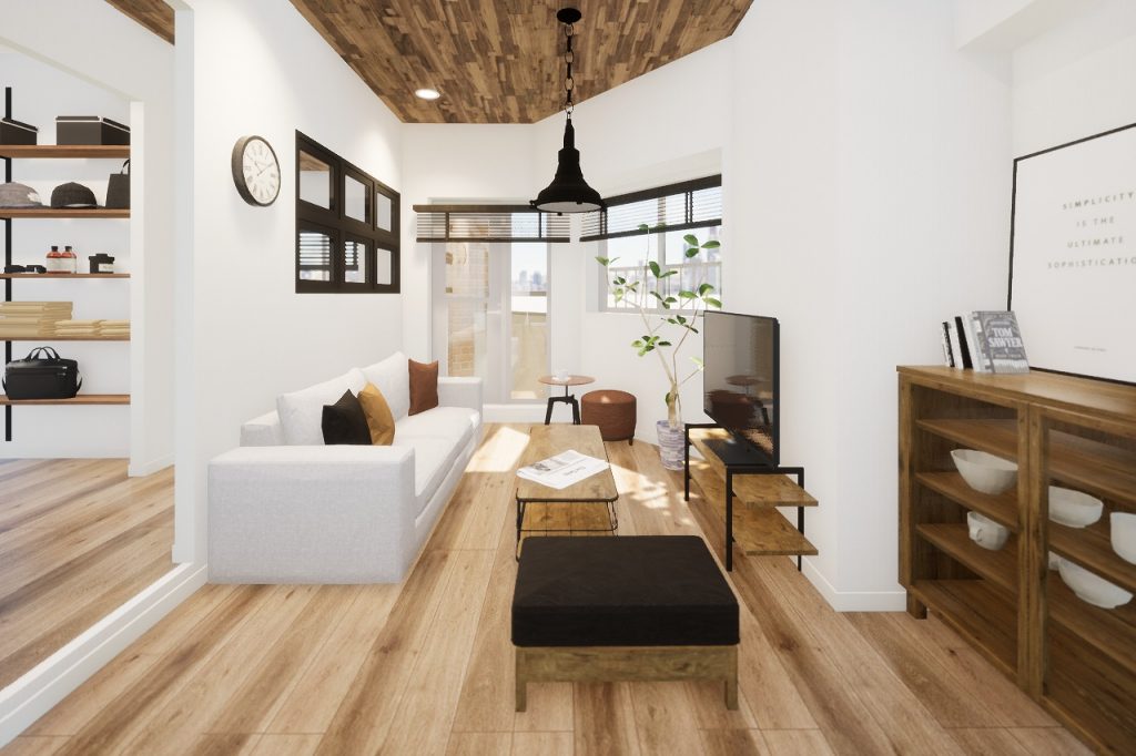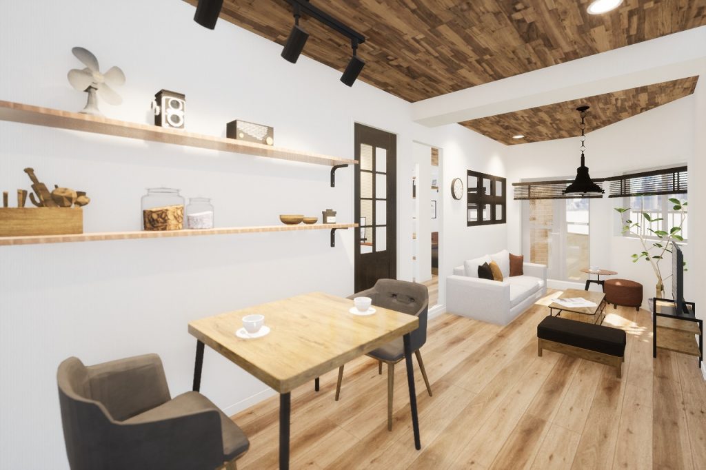 LDKの様子です。床や天井の色や柄を変えると、がらっと雰囲気が変わります!