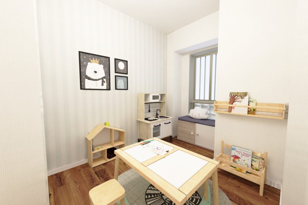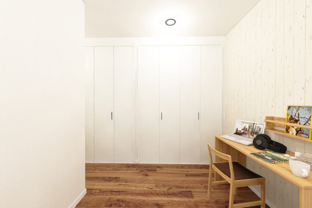 将来お子様が大きくなったらデスクとベッドを置いて一人部屋にしてあげましょう。