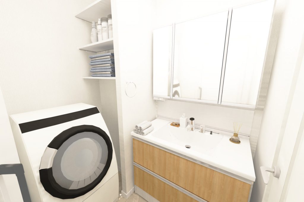 洗面も木目調が可愛い最新の洗面化粧台に交換。