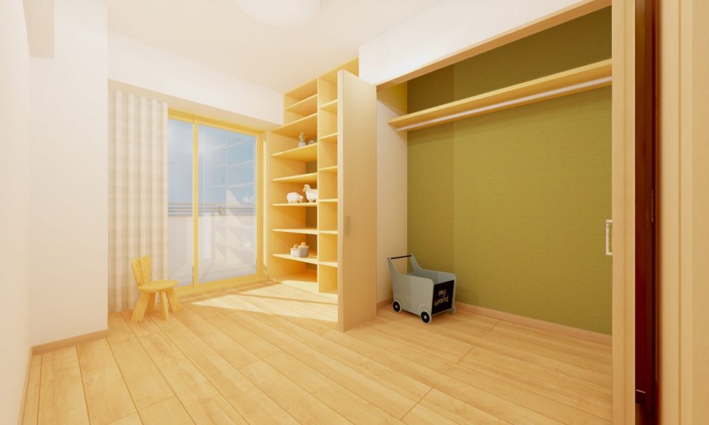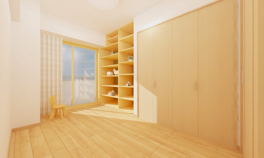 洋室2と洋室3は、既存の造作棚はそのまま生かします。