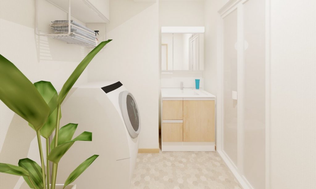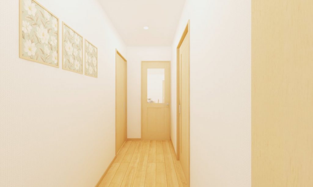 玄関を入ると、すぐに洋室だった間取りを、壁を立てることでプライベート性を高めました。