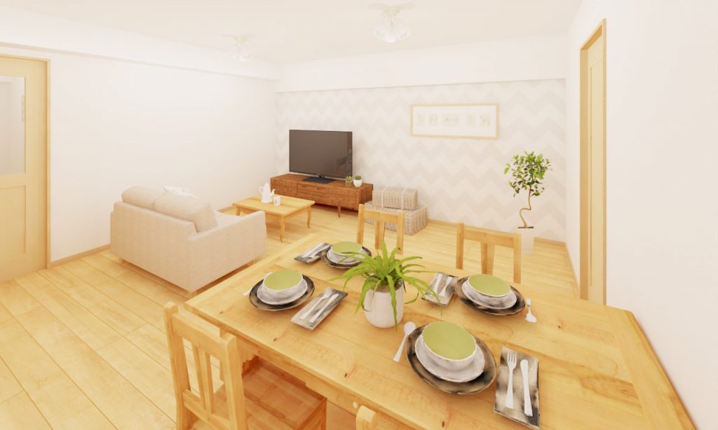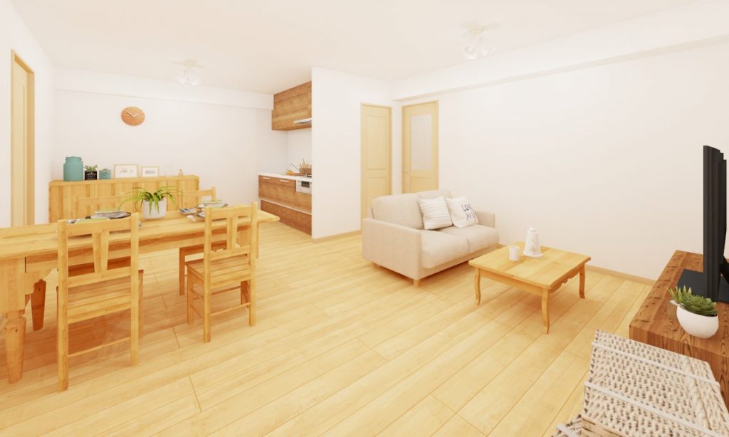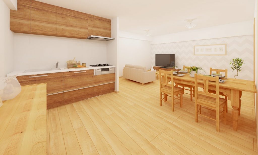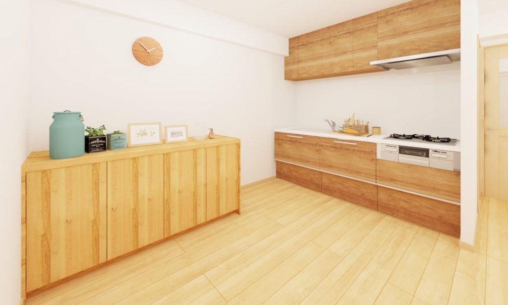 DKの隣の納戸と造作棚を撤去して、約12.9帖のDKに変身!