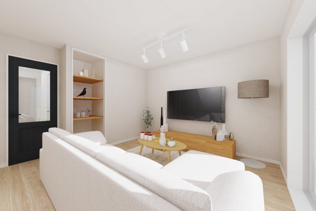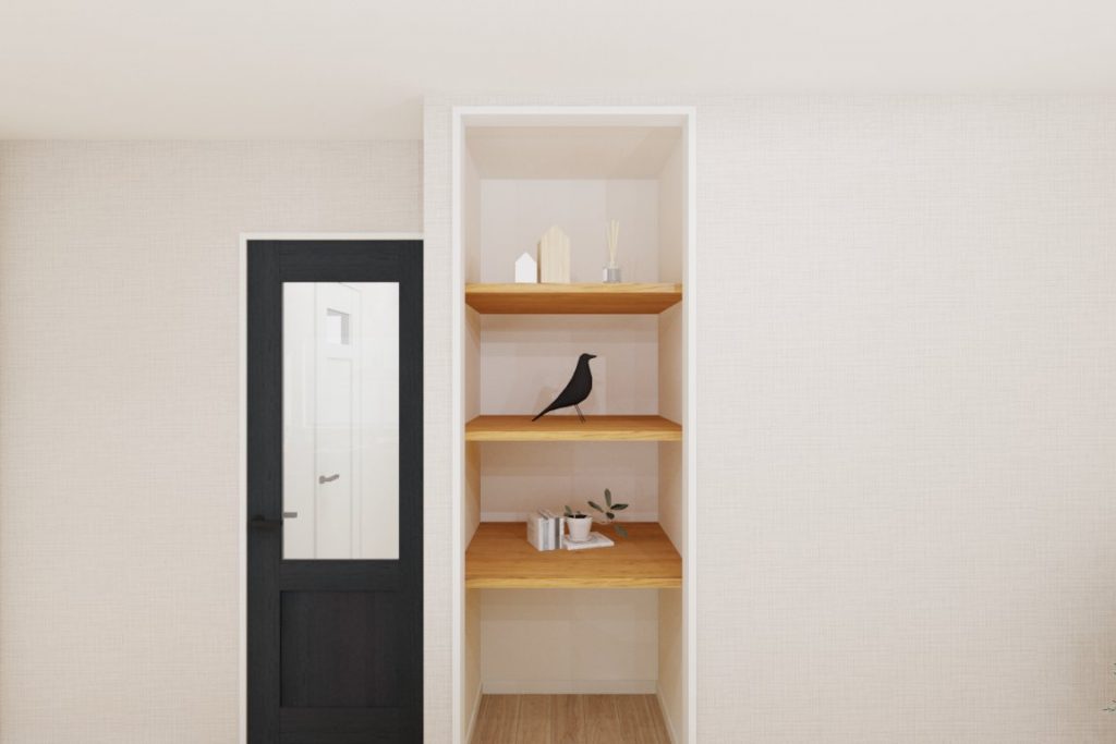 LDKの入り口近くの収納は、建具をなくしてオープンな収納に変身させました。