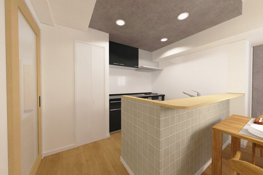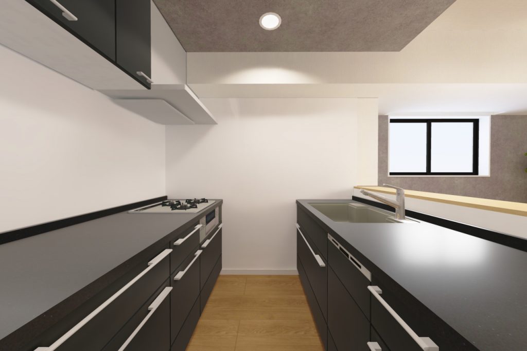 キッチンは壁付けタイプだったものを、Ⅱ型キッチンに仕様変更してみました。