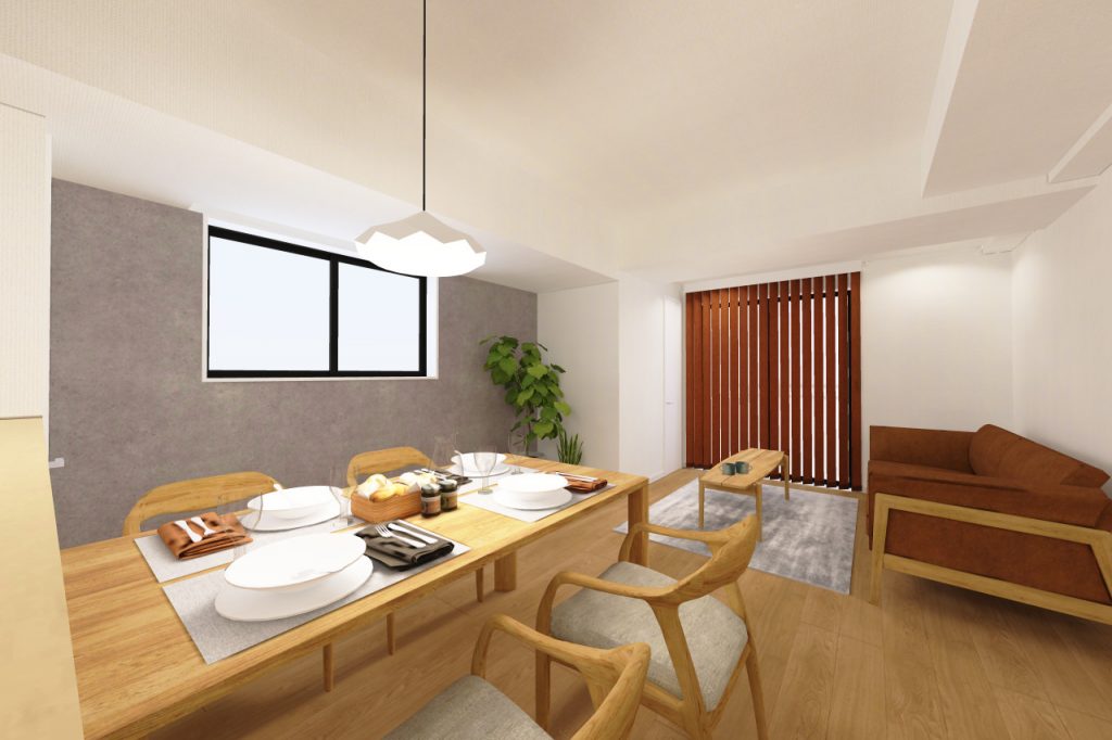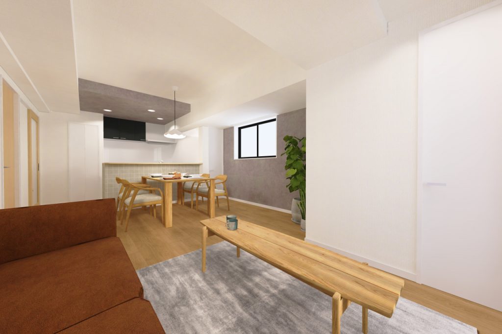 さらに内装は、石目調のアクセントとナチュラルな空間で異素材MIXテイストを作ってみました。