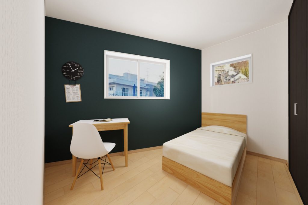 こちらは約4.5帖の洋室です。今回は子供部屋としてプランニング致しました。