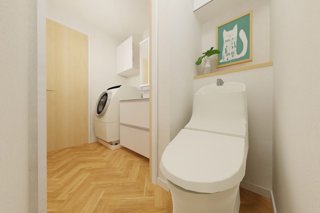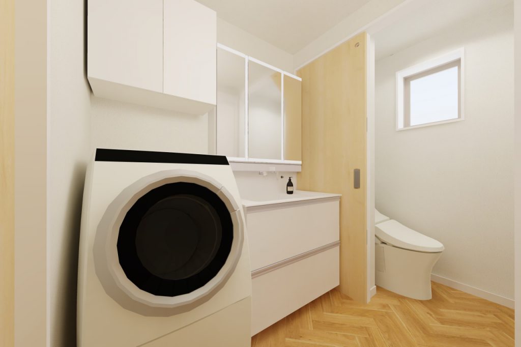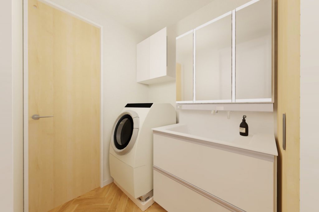 洗面室には洗濯機置場も新設し、現代的な生活様式にあわせてアップデートしています。