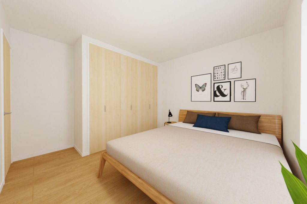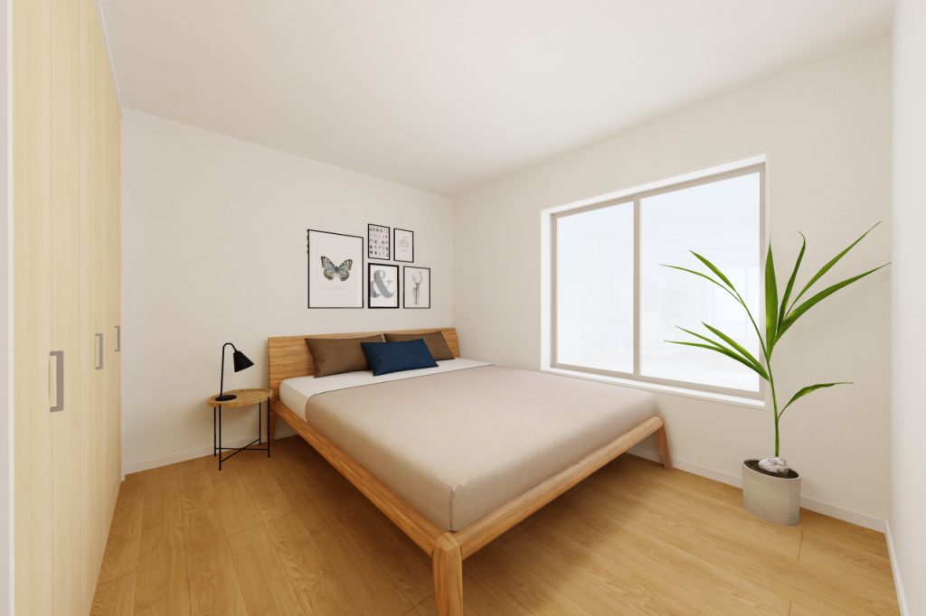 窓側にあった収納スペースは90度向きを変えて、奥行きを感じられる主寝室にしてみました。