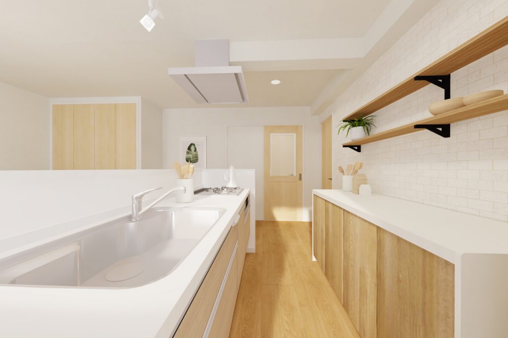 キッチン背面にも収納を作り、食器などをスッキリ収納することができます。